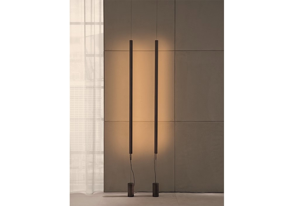 Cut Back Up&Down conçu par David Lopez Quincoces pour DePadova, est un lampadaire-plafonnier réglable en hauteur, doté d'une source lumineuse orientable pour un éclairage flexible et précis. Structure et base en aluminium peint bronze satiné, diffuseur en verre strié transparent. Alimentation et commande intégrées au kit (sortie 24 V), avec commande marche/arrêt sur le câble d'alimentation.