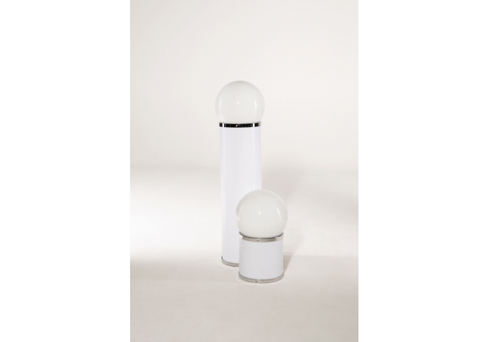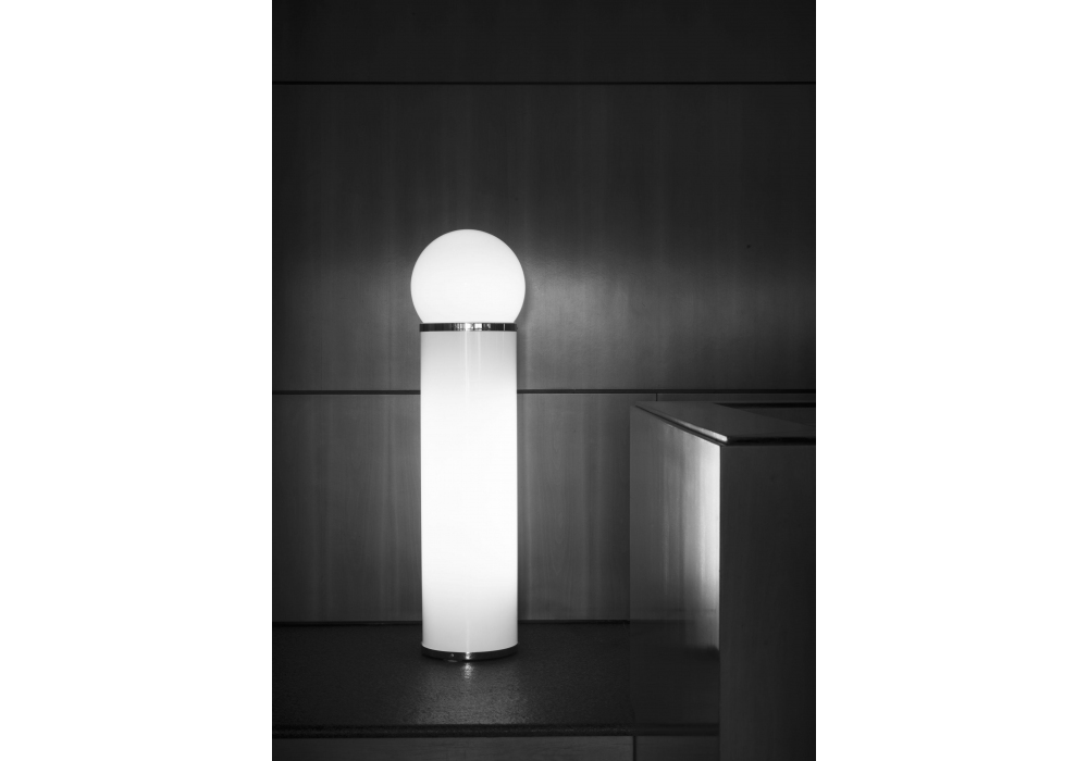 1809, signée Tacchini Design Studio, est une lampe de sol dotée d’un éclairage réglable permettant de gérer séparément ou conjointement la lumière du corps et de la sphère, offrant une grande polyvalence d’utilisation et d’ambiance. La sphère en verre opalin diffuse une lumière douce et enveloppante, tandis que la structure en PMMA, enrichie de détails métalliques chromés, confère légèreté visuelle et caractère contemporain.