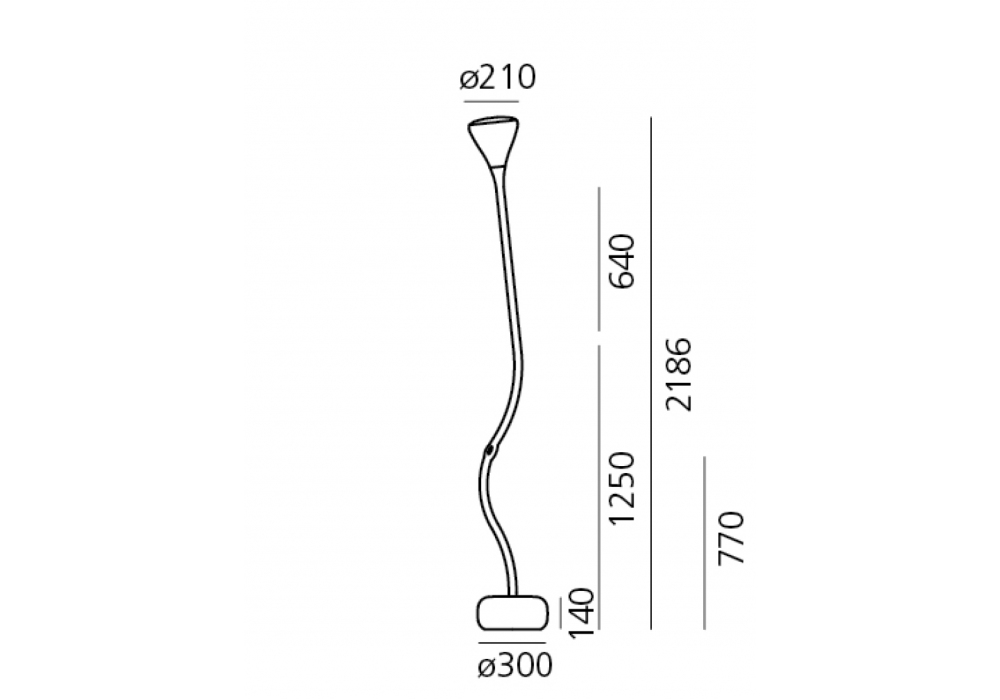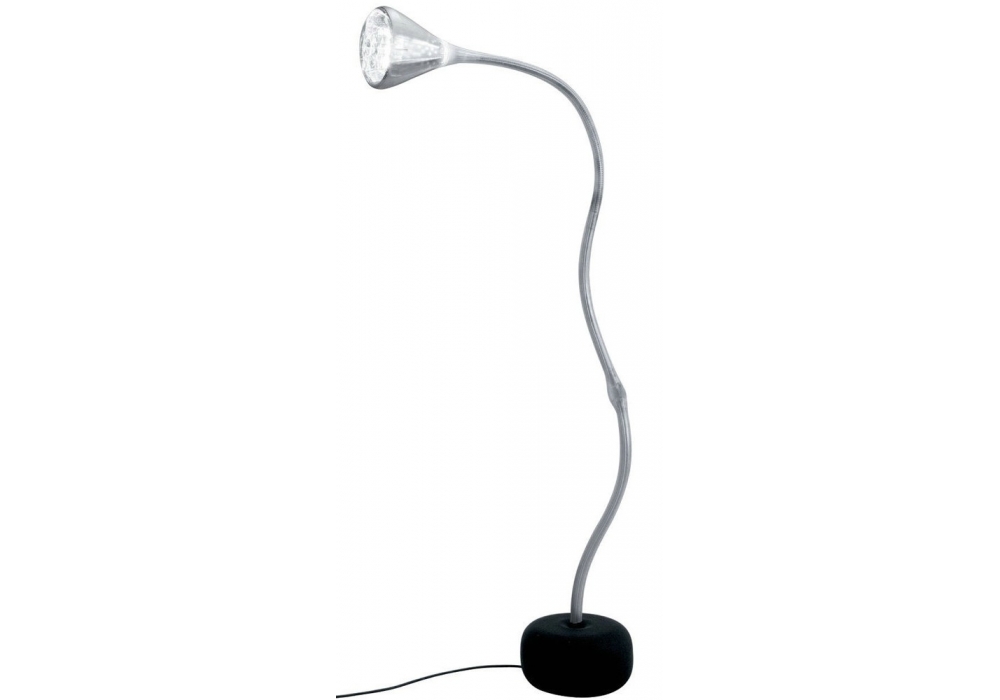 Pipe conçue par Herzog & de Meuron pour Artemide est un lampadaire avec une base circulaire en acier peint en noir et une structure flexible en acier recouverte d'une gaine en silicone platine. Le diffuseur est en polycarbonate peint transparent et adopte une source de lumière LED dimmable en différents niveaux de lumière.