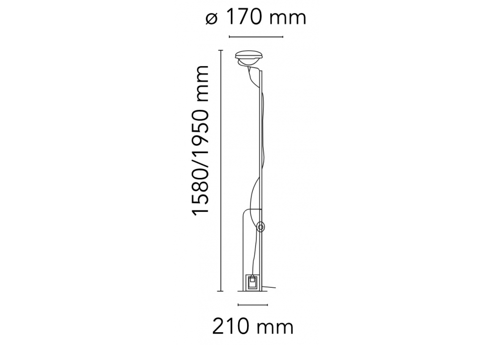 Toio conçu par Achille & Pier Giacomo Castiglioni pour Flos est un lampadaire à lumière indirecte. Base en acier découpé et plié et structure en profilés d'acier, tous deux peints à la peinture liquide, disponibles en plusieurs couleurs. Tige hexagonale en laiton nickelé. Le mouvement télescopique de la tige permet de régler la hauteur du luminaire. Le variateur électronique sur le câble permet de régler l'intensité lumineuse par paliers. Source lumineuse LED incluse.