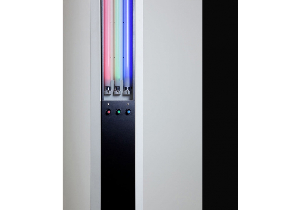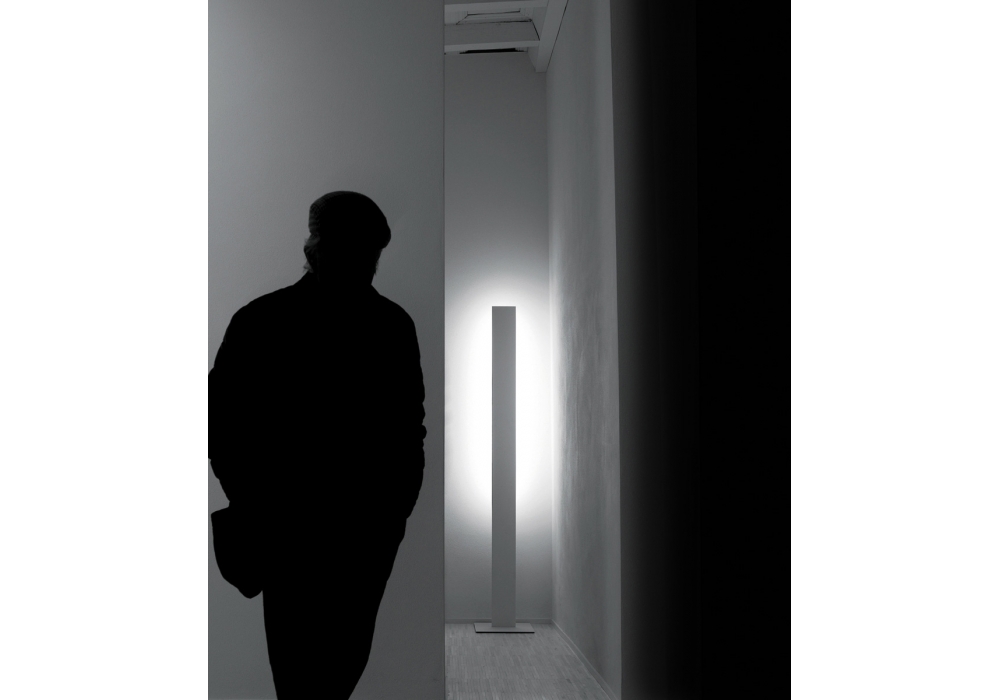 Movie conçu par Omar Carrraglia pour Davide Groppi est un lampadaire avec base quadrangulaire et structure verticale en métal peint. Le diffuseur est en polycarbonate et protège une source lumineuse LED RVB dimmable avec commande sans fil. Le film est disponible en différentes finitions.