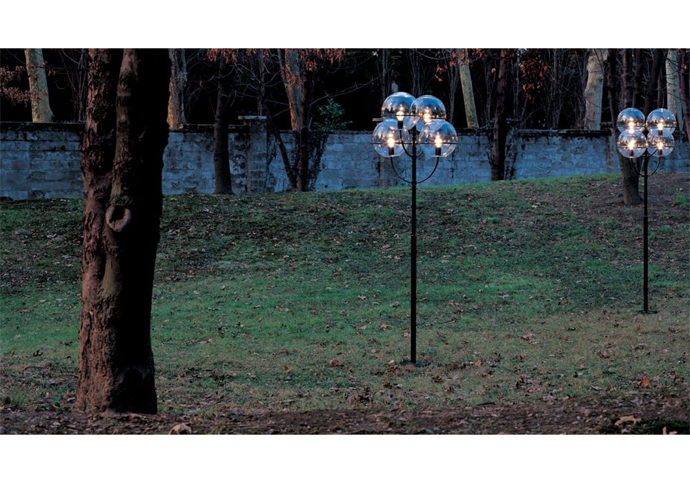 Lyndon conçu par Vico Magistretti pour Oluce est un lampadaire d'extérieur avec structure portante en métal galvanisé peint en noir. Le diffuseur est en polycarbonate transparent et protège une source lumineuse. Lyndon est disponible en différentes tailles.