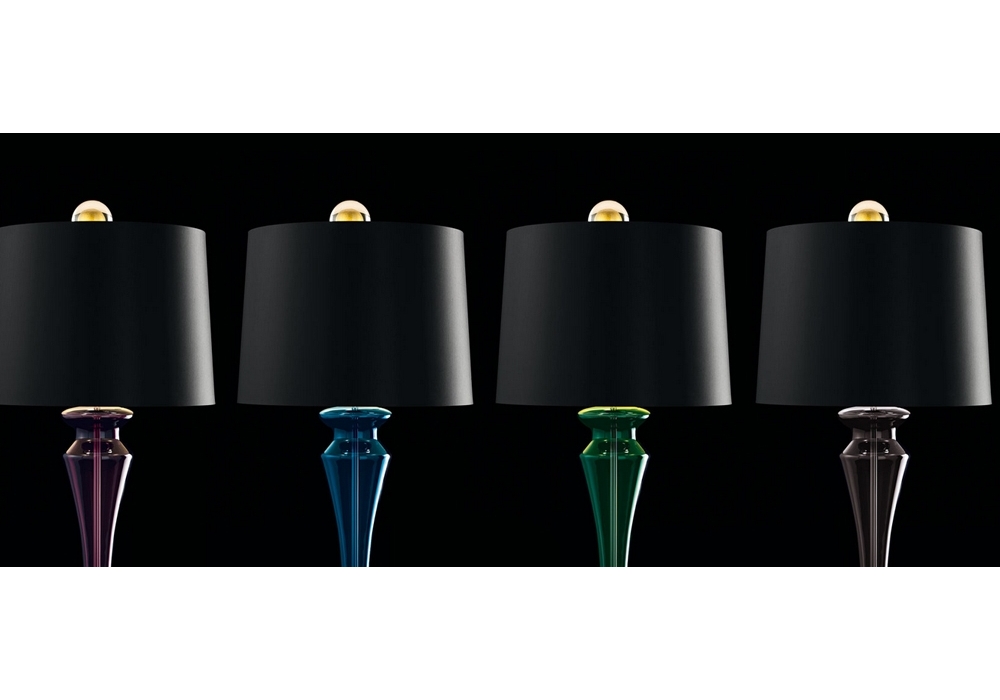 Saint Germain conçue par Giorgia Brusemini pour Barovier & Toso est une lampe de table avec base circulaire et détails en métal chromé ou galvanisé doré. Le corps de la lampe est recouvert de verre vénitien et adopte un abat-jour circulaire en tissu qui protège les sources lumineuses LED ou halogènes dimmables. Saint Germain est disponible en différentes finitions.