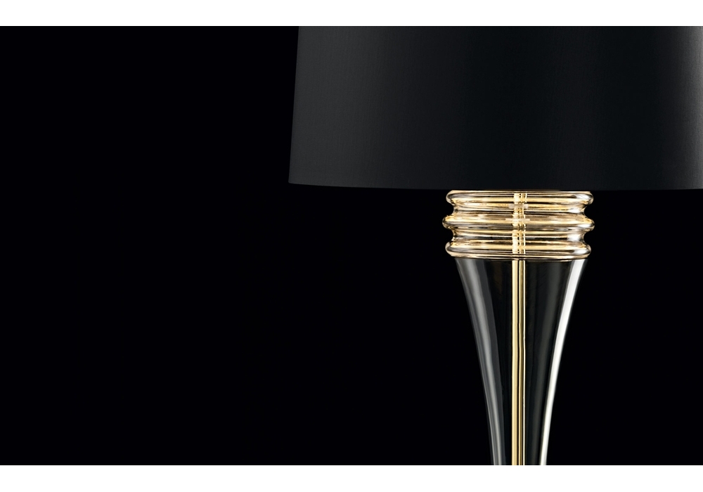 Rive Gauche conçue par Giorgia Brusemini pour Barovier & Toso est une lampe de table avec base circulaire et détails en métal chromé ou galvanisé doré. Le corps de la lampe est recouvert de verre vénitien et adopte un abat-jour en tissu qui protège les sources lumineuses LED ou halogènes dimmables. Rive Gauche est disponible en différentes finitions.