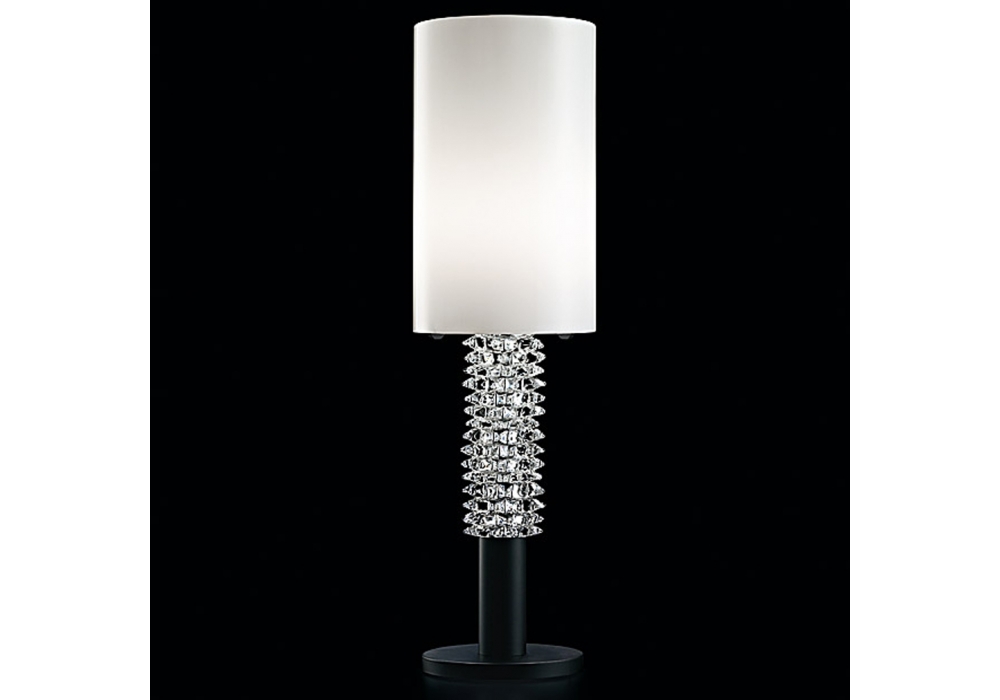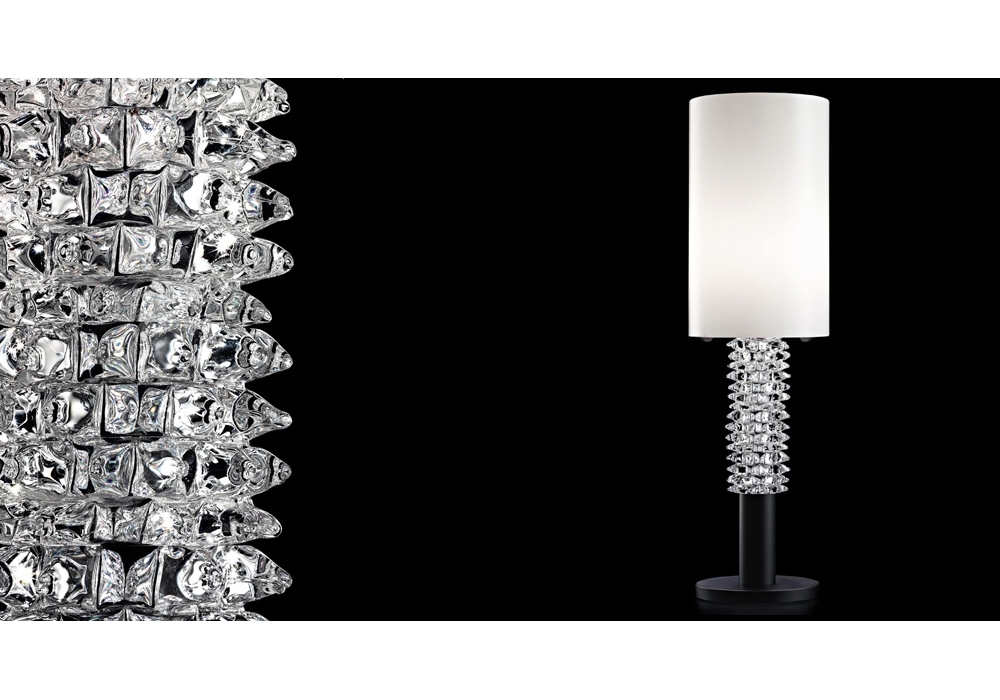 My Marylin conçue par Giorgia Brusemini pour Barovier & Toso est une lampe de table à base circulaire et tige tubulaire en métal peint noir ou myrrhe agrémenté de bobines de cristal. Le diffuseur est cylindrique en verre vénitien blanc et adopte une source lumineuse LED ou halogène dimmable. My Marylin est disponible en différentes tailles et finitions.