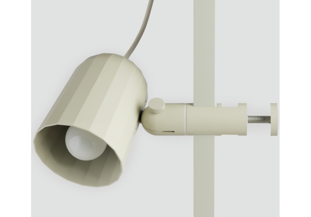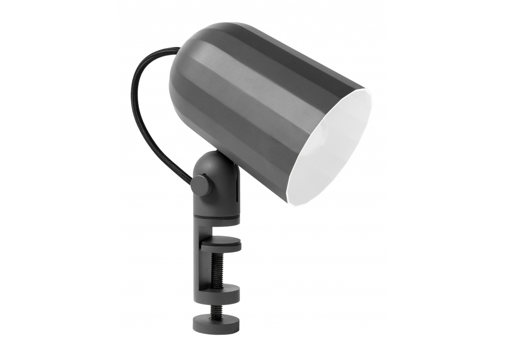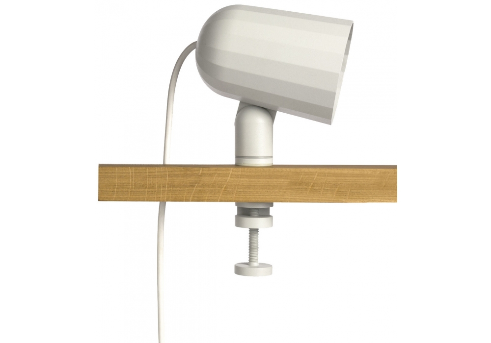 Noc conçue par SmithMatthias pour Hay est une lampe à pince avec structure en aluminium usiné, abat-jour en aluminium moulé sous pression et câble en silicone noir pour la version gris foncé et blanc pour la version blanc cassé. Disponible en différentes finitions.
