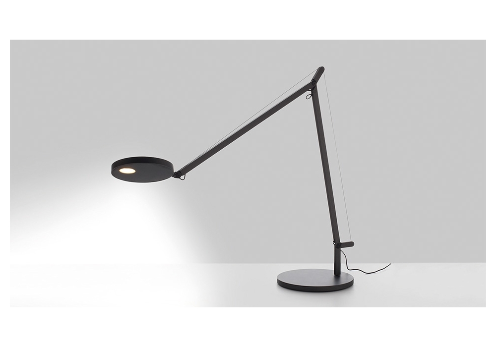 Demetra est une lampe de table conçue par Naoto Fukasawa pour Artemide avec base circulaire et bras mobiles en aluminium et acier. La tête est réglable avec un diffuseur en technopolymère qui protège une source de lumière LED à intensité variable. Demetra est disponible en différentes finitions, versions et types de source lumineuse.
