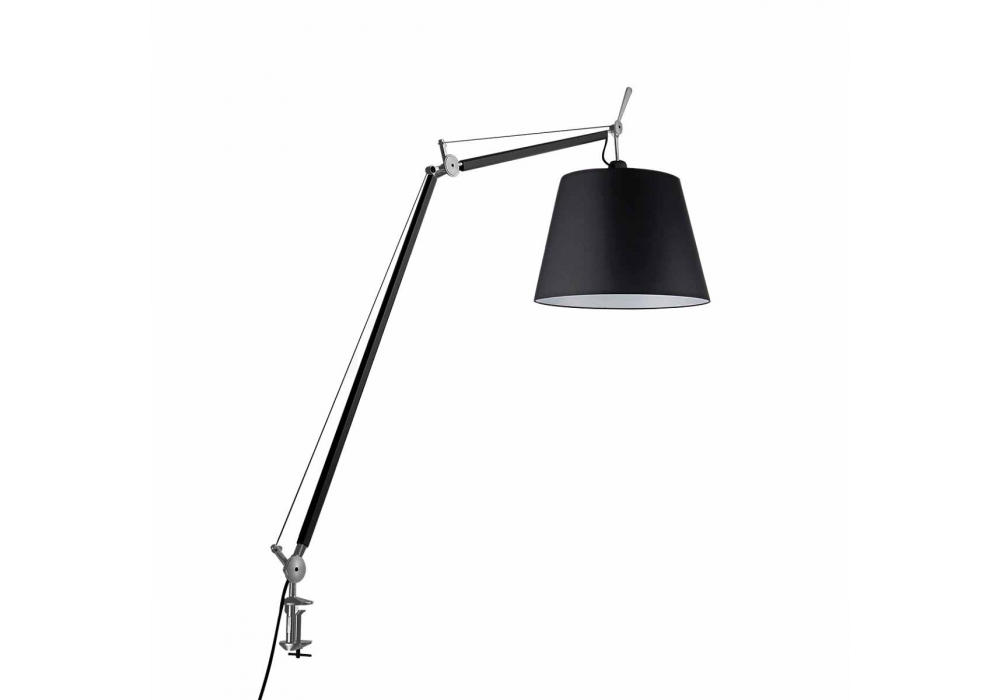 Tolomeo Mega conçue par Michele De Lucchi & Giancarlo Fassina pour Artemide est une lampe de table entièrement réalisée en aluminium peint ou naturel. La structure est équipée de bras mobiles avec articulations et supports en aluminium poli. L'abat-jour est de forme circulaire et peut être choisi en satin, tissu ou parchemin et adopte une source de lumière LED avec ou sans système dimmable. Tolomeo Mega est disponible en différentes finitions en version pince ou broche fixe.