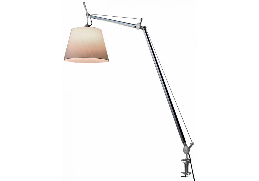 Tolomeo Mega LED conçue par Michele De Lucchi & Giancarlo Fassina pour Artemide est une lampe de table entièrement réalisée en aluminium peint ou naturel. La structure est équipée de bras mobiles avec articulations et supports en aluminium poli. L'abat-jour est de forme circulaire et peut être choisi en satin, tissu ou parchemin et adopte une source de lumière LED avec ou sans système dimmable. Tolomeo Mega LED est disponible en différentes finitions en version pince ou broche fixe.