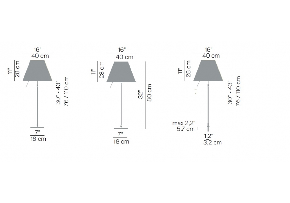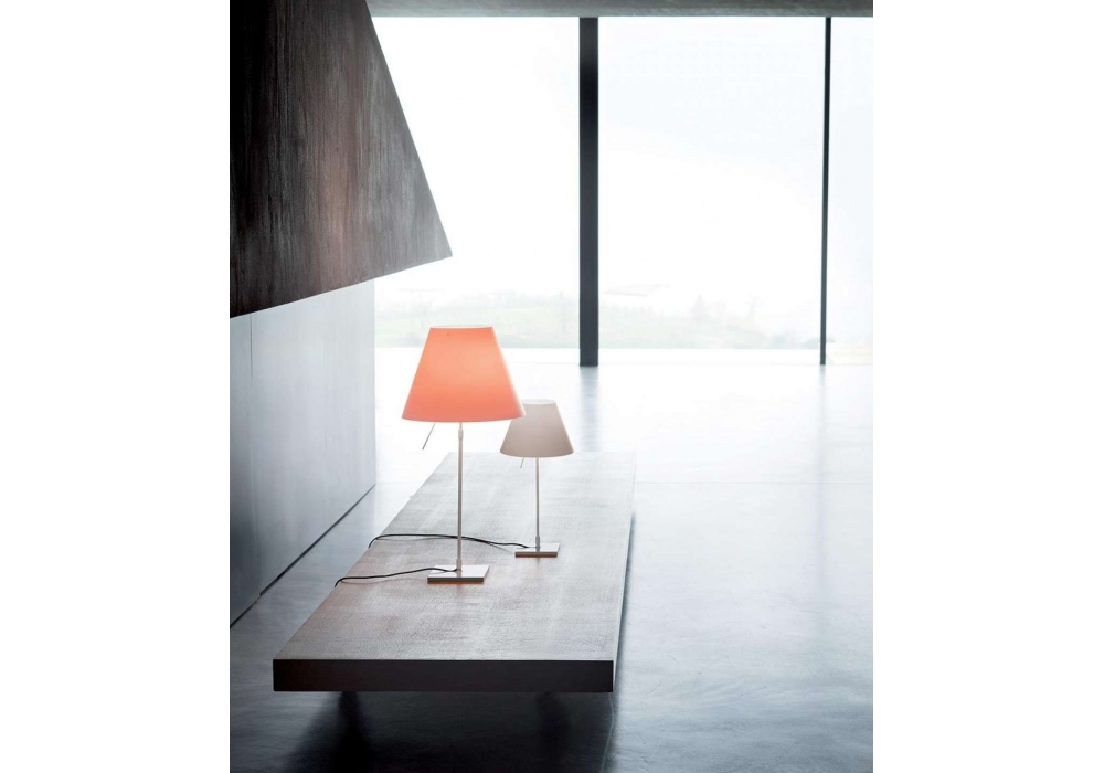 Costanza conçue par Paolo Rizzatto pour Luceplan est une lampe de table avec tige en aluminium, abat-jour fixe ou télescopique et interchangeable en polycarbonate sérigraphié. Disponible en différentes finitions.