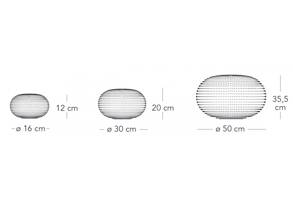 | Dimensions | Ø 16 x H 12 cm; Ø 30 x H 20 cm; Ø 50 x H 35,5 cm. |