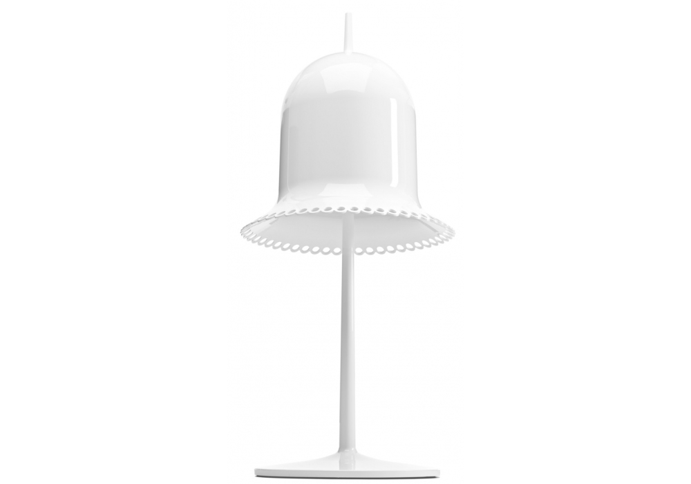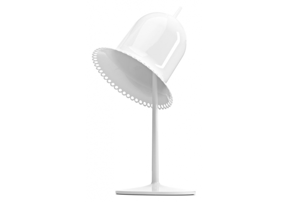 Lolita conçue par Nika Zupanc pour Moooi est une lampe de table avec abat-jour en ABS et base en polyuréthane. Disponible en trois couleurs: rose, blanc et london rosé.