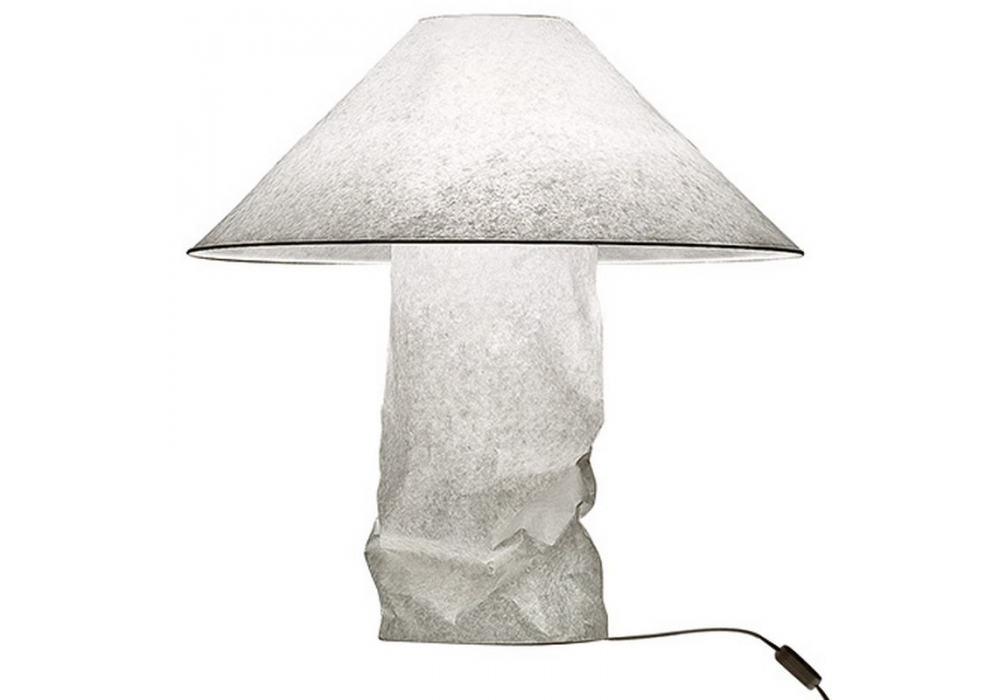 Lampampe conçu et produit par Ingo Maurer est une lampe de table en papier japonais et métal. Le design caractéristique de la lampe est l'effet froissé du papier.