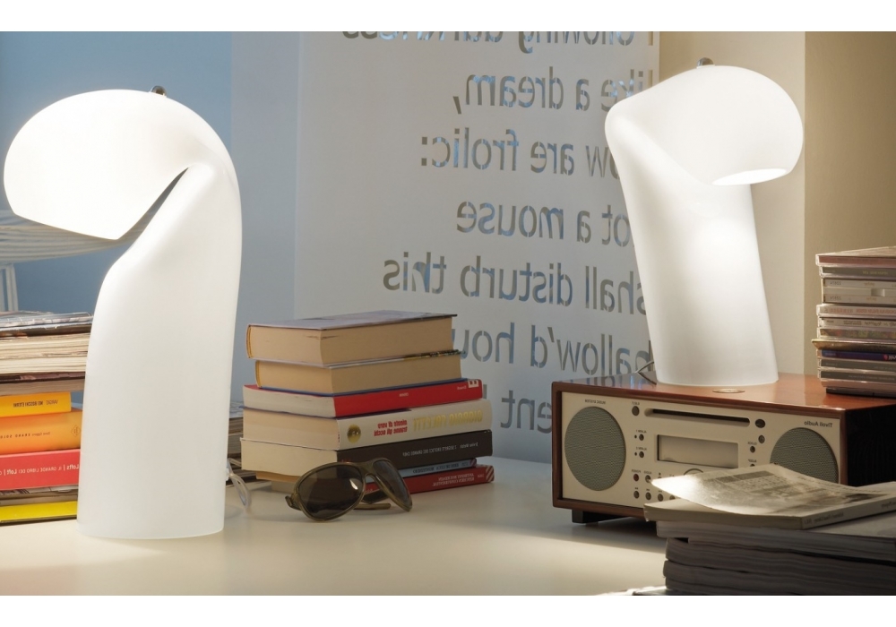 Bissona conçue et produite par Vistosi est une lampe de table entièrement structurée en verre artisanal de couleur blanc brillant. La source lumineuse adoptée est à couplage LED ou halogène de type G9 avec interrupteur marche/arrêt sur le câble d'alimentation.