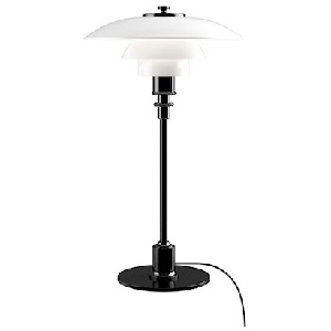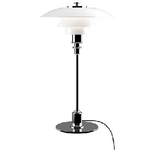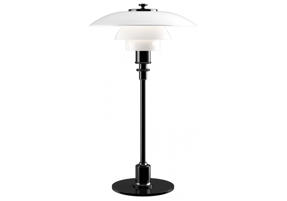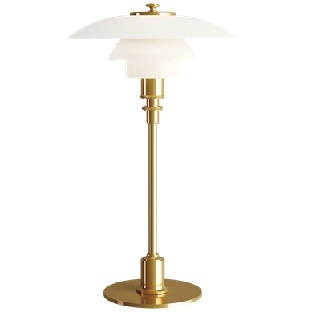 PH 2/1 conçue par Poul Henningsen pour Louis Poulsen est une lampe de table avec base et structure portante en laiton étiré. Le diffuseur est en verre blanc opale et protège une source lumineuse LED ou halogène avec connexion G9. PH 2/1 est disponible en différentes finitions.