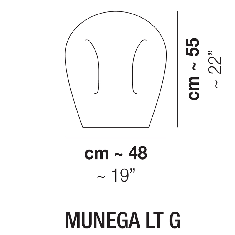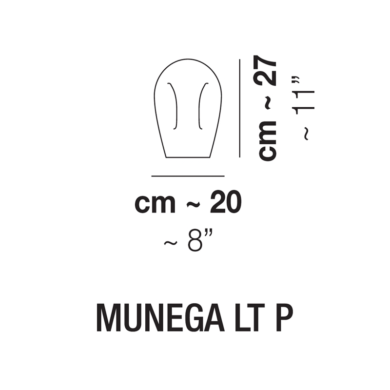 Munega conçue par Luciano Vistosi est une lampe de table entièrement en verre soufflé blanc modelé à la main. La source lumineuse adoptée est à LED E14 ou E27 ou halogène avec interrupteur marche/arrêt sur le câble d'alimentation. Munega est disponible en deux modèles différents.