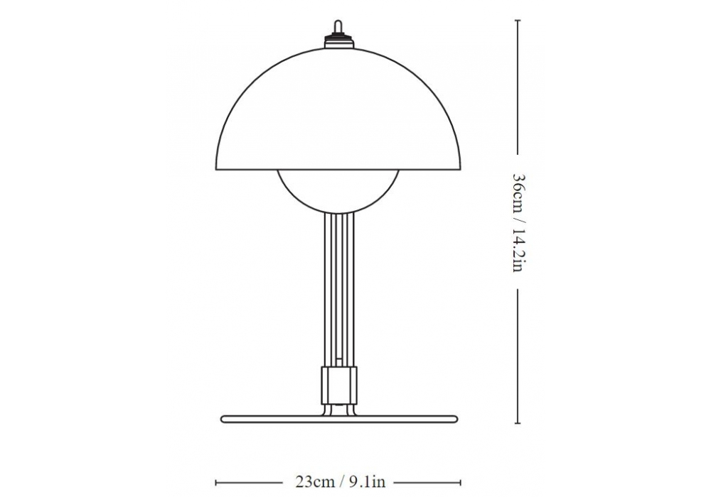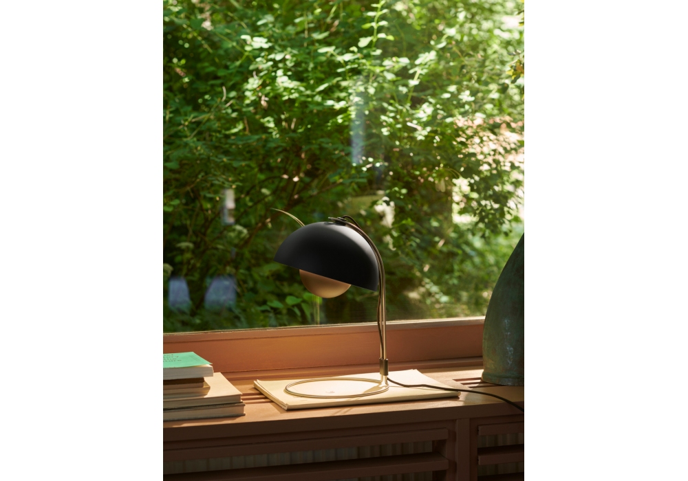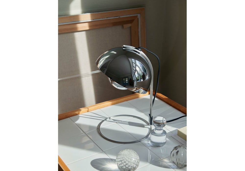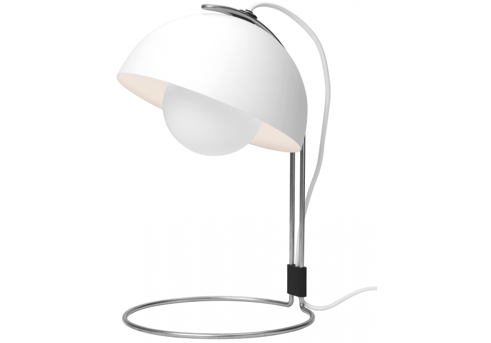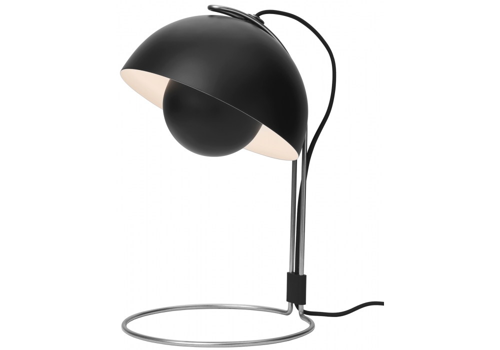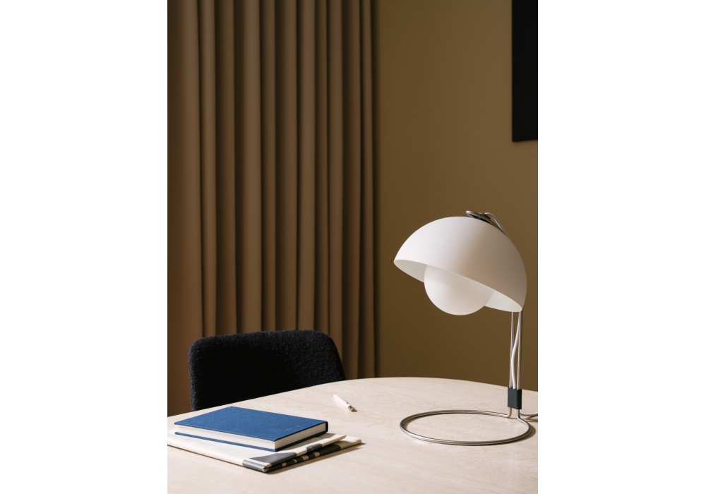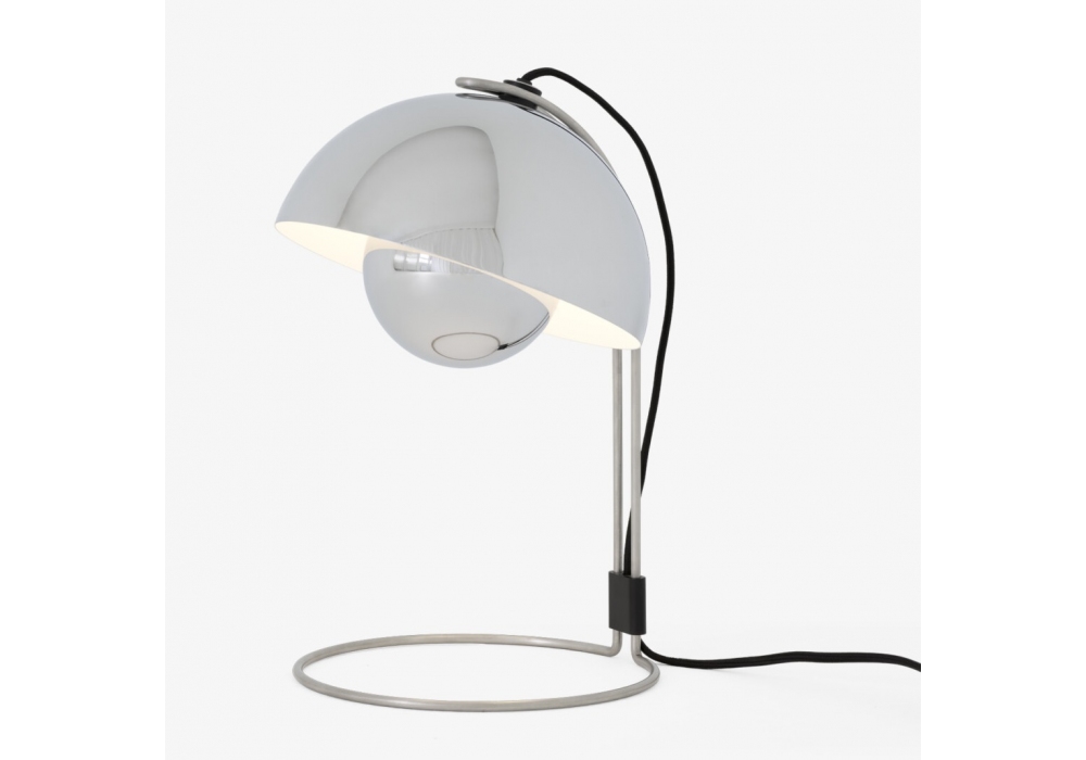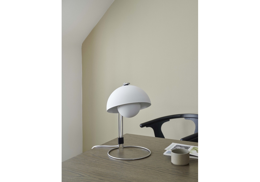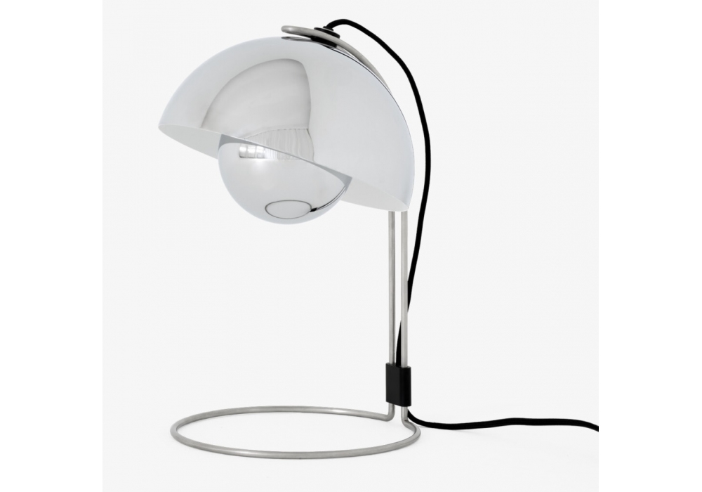 Flowerpot VP4 conçue par Verner Panton pour &Tradition est une lampe de table en acier laqué ou plaqué et câble en tissu. Disponible en différentes finitions.