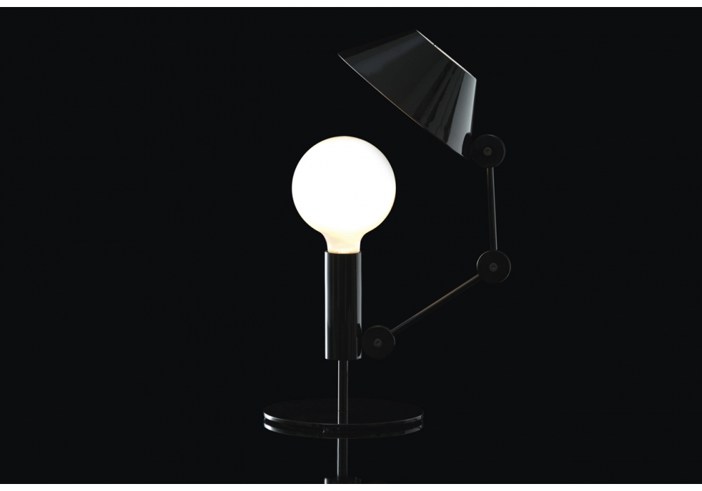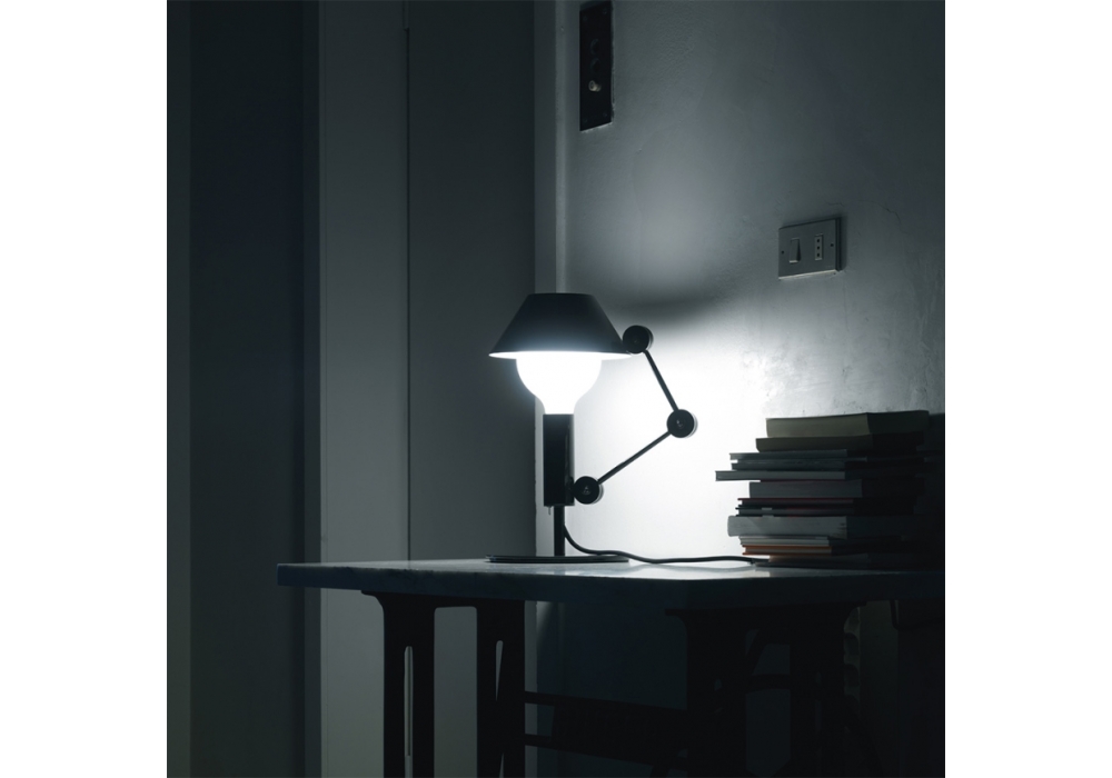 Mr. Light Short conçue par J. Mariscal pour Nemo est une lampe de table structurée entièrement en métal peint en noir mat. Le bras articulé est équipé de trois articulations qui régulent la mobilité du diffuseur qui protège une source lumineuse avec raccord E27 et interrupteur sur câble.