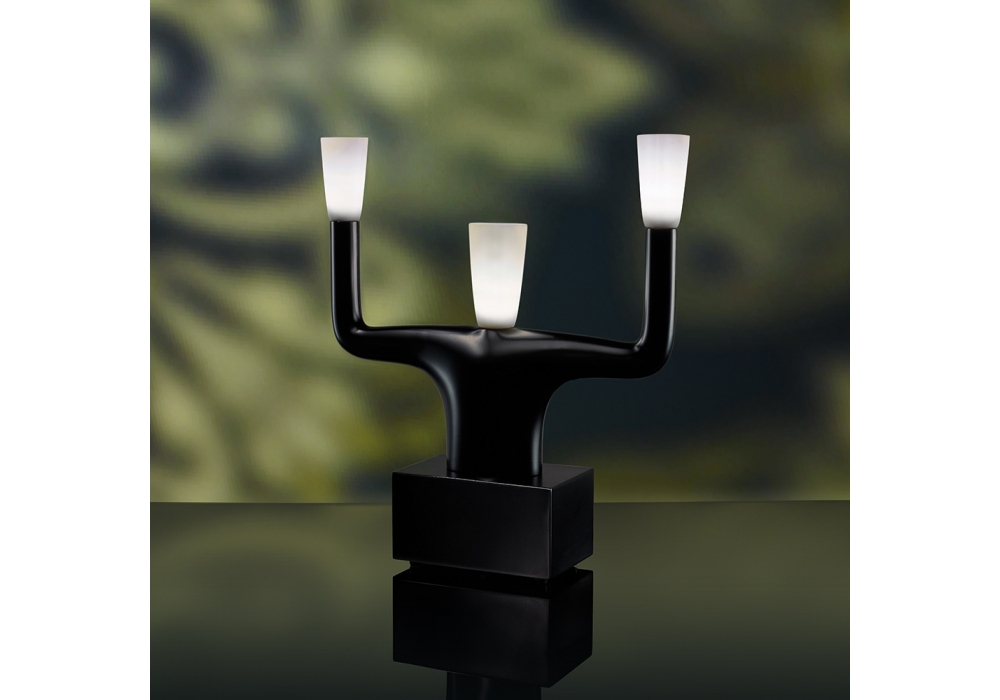 Guru conçu par Andrea Branzi pour Qeeboo est une lampe de table en abs et polycarbonate. Guru est une lampe à trois bras en une structure anthropomorphique, rappelle un ancien candélabre.