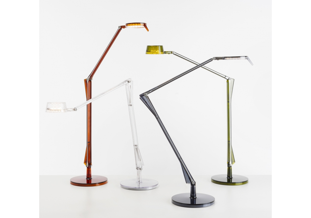Aledin conçue par Alberto e Francesco Meda pour Kartell est une lampe de table en polycarbonate et aluminium anodisé.