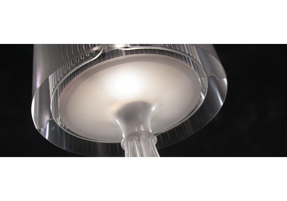Liza conçue par Elisa Giovannoni pour Slamp est une lampe de table avec structure portante et base en polycarbonate. L'abat-jour est fabriqué en Lentiflex®, Pewterflex® ou Cristalflex® et protège une source lumineuse LED à filament. Liza est disponible en différentes finitions.