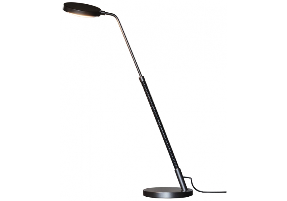 Spoon conçue par Umberto Asnago pour Penta est une lampe de table avec structure en métal mat et cuir tissé à la main dans les combinaisons suivantes : cuir noir mat/cognac ou cuir noir/noir mat ou entièrement en métal gris. La source lumineuse adoptée est de type LED avec système de gradateur sur le cordon d'alimentation.