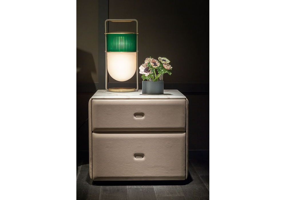 Xi conçue par Neri & Hu pour Poltrona Frau est une lampe de table positionnée sur une base en métal avec finition laiton naturel. Le bande en cuir Saddle Extra agit à la fois comme un support et une poignée et est disponible aussi en 2 différentes finitions. La lumière est réglable grâce au système touch dimmer on/off.