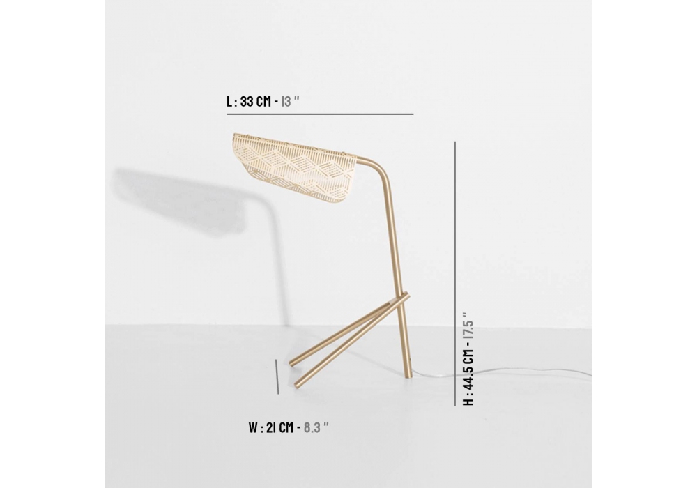 Mediterranea conçue par Noé Duchaufour Lawrance pour Petite Friture est une lampe de table à LED intégrée en laiton brossé satiné.