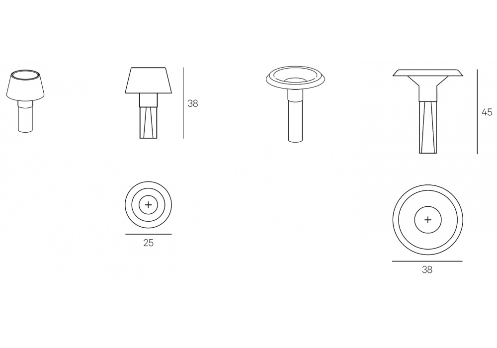 | Dimensions | Ø 25 cm x H 38 cm; Ø 38 cm x H 45 cm. |