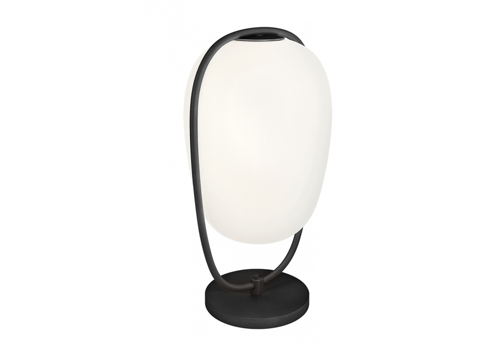 Lannà conçue par Noé Duchaufour Lawrance pour Kundalini est une lampe de table avec structure en métal peint et diffuseur en verre soufflé opale. Disponible en différentes finitions.