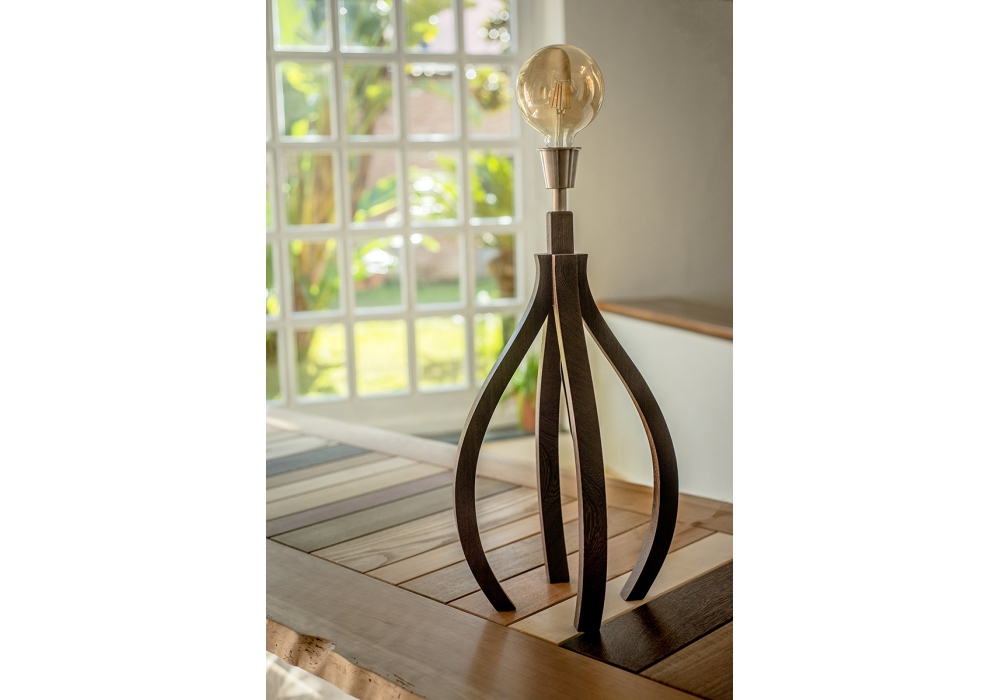 Puppulamp par Ornythos est une lampe à poser en bois. La collection comprend trois tailles différentes et différentes essences de bois.
