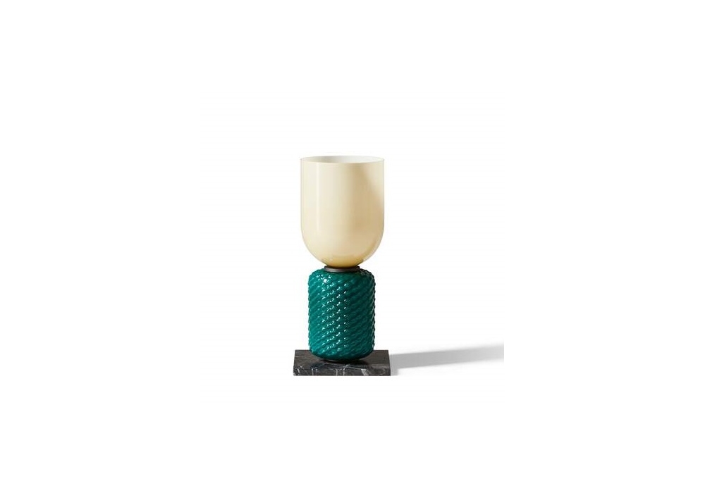 089 Ficupala conçue par Cassina est une lampe de table réalisée avec une base en marbre et un corps et un diffuseur en verre. Disponible en différentes finitions.