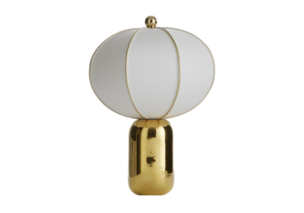 Balloon 7206/L1P conçue et produite par MMLampadari est une lampe de table avec diffuseur en tissu. La structure métallique est disponible en deux variantes (noir mat et or 24 carats).
