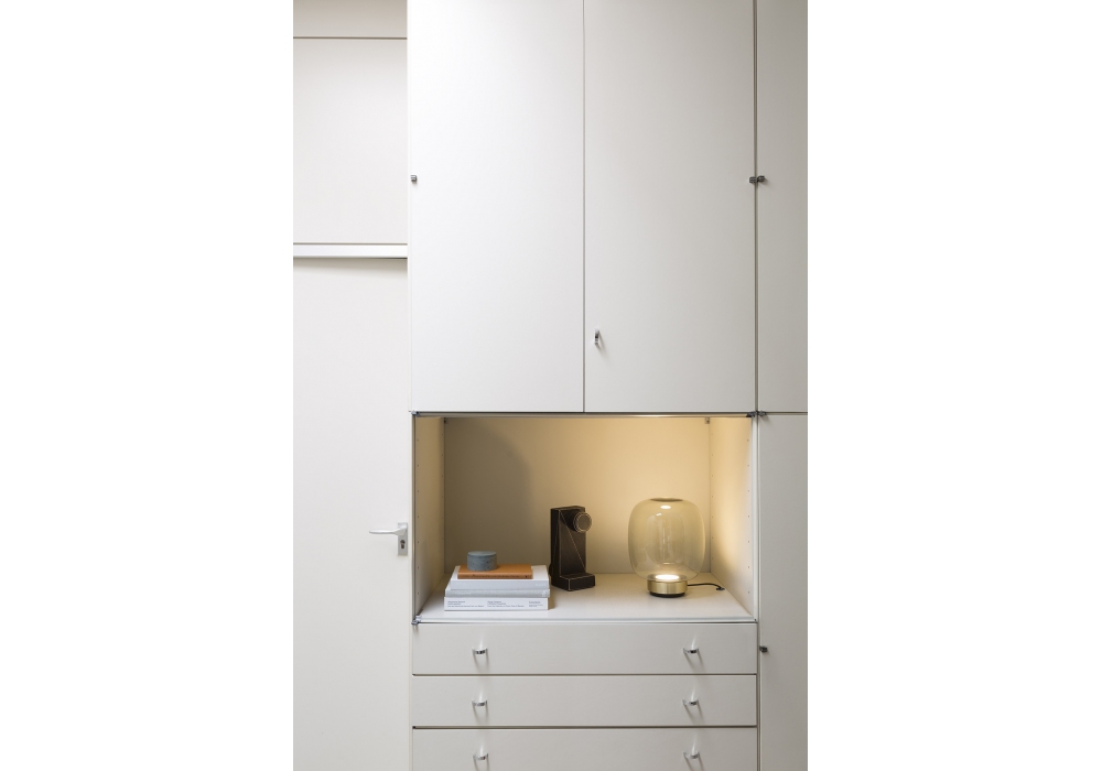 557 Leiger conçue par Corrado Dotti pour Tooy est une lampe de table LED avec structure de couleur noir sable, connexion de lampe en cuivre, laiton brossé ou peint, tandis que le diffuseur est réalisé en verre soufflé blanc opale ou fumé. LED incluse.