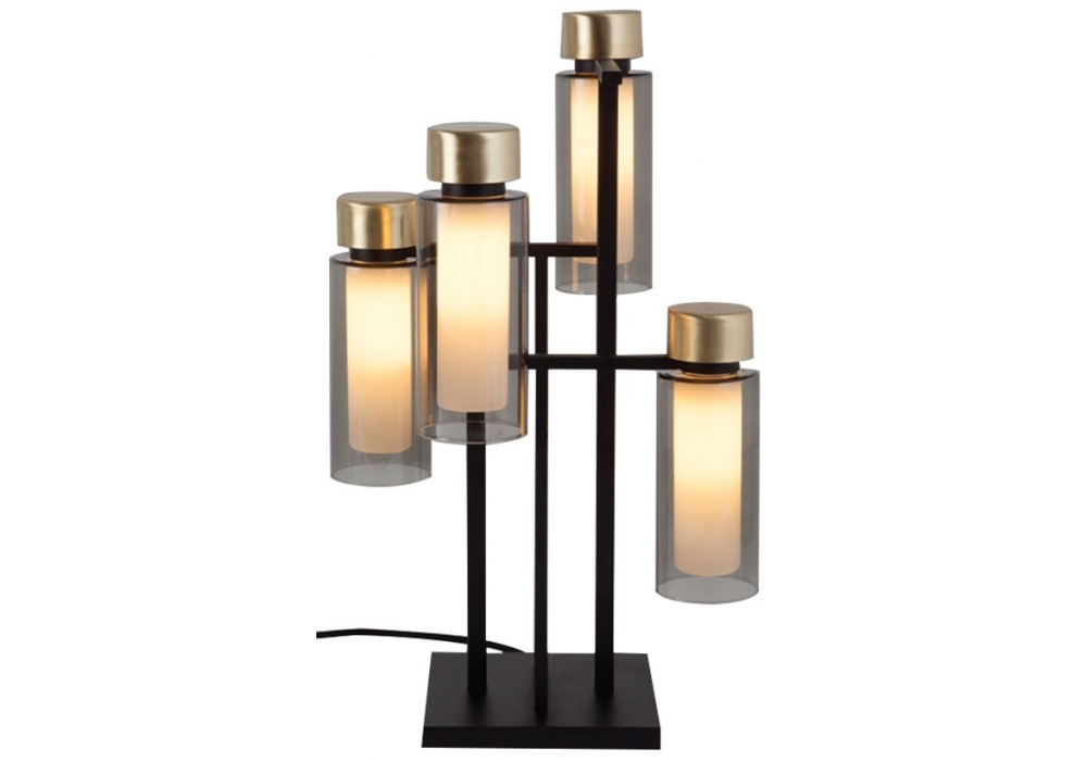 560 Osman conçue par Corrado Dotti pour Tooy est une lampe de table enrichie de détails en laiton brossé et diffuseur à double paroi en verre transparent ou détails en chrome noir et abat-jour en verre fumé. Il est disponible en 2 modèles. Le plus grand modèle est également disponible avec un variateur intégré sur le câble.
