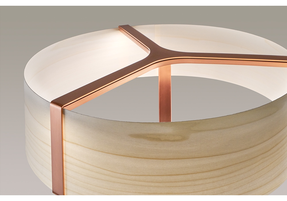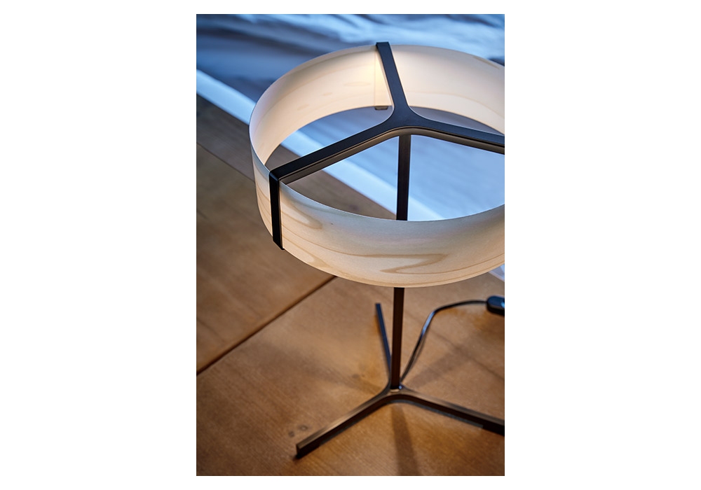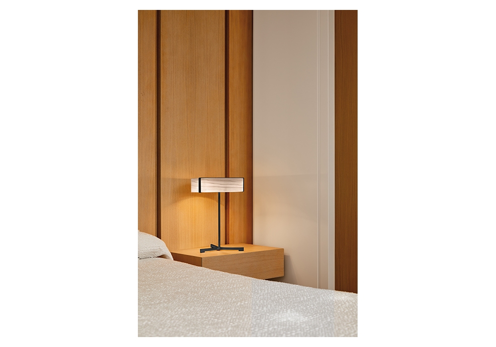 Thesis conçue par Ramòn Esteve Studio pour LZF est une lampe de table en structure métallique et diffuseur en bois. Disponible en différentes finitions.