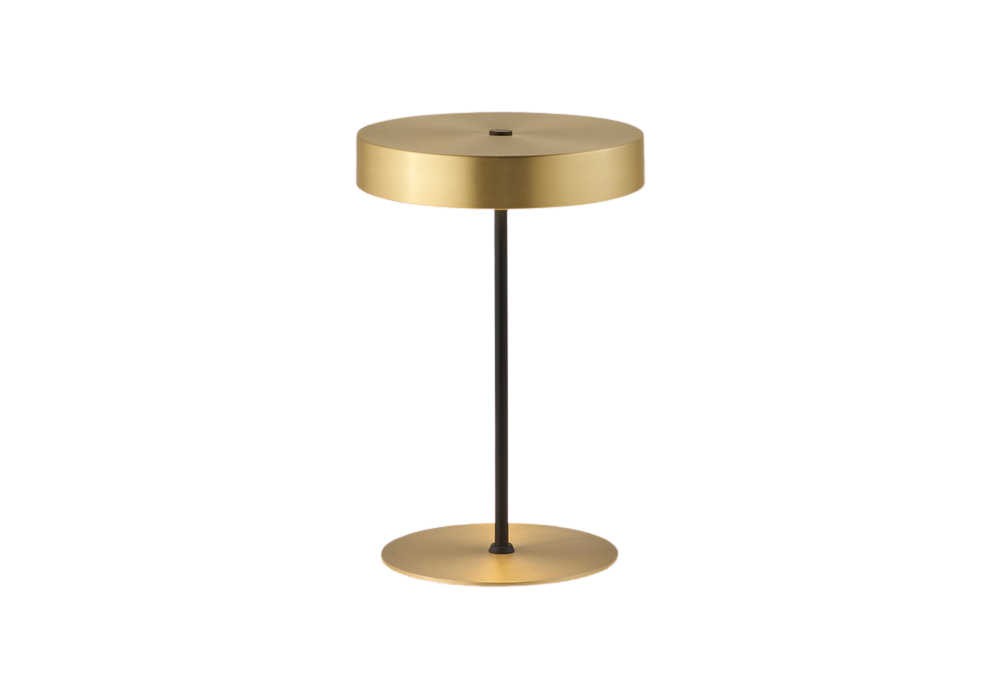 Ambor conçue par Pepe Fornas pour Aromas del Campo est une lampe de table avec diffuseur et base en verre acrylique disponible en deux couleurs (laiton mat ou noir mat), et structure en acier noir.
