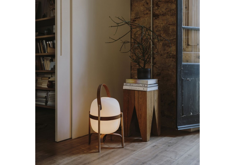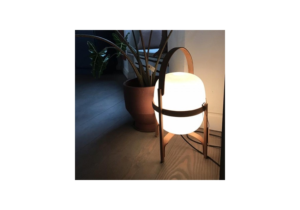 Cesta conçue par Miguel Milá pour Santa&Cole est une lampe de table avec un diffuseur en opale blanche. Structure en bois de cerisier, abat-jour en verre opale blanc.