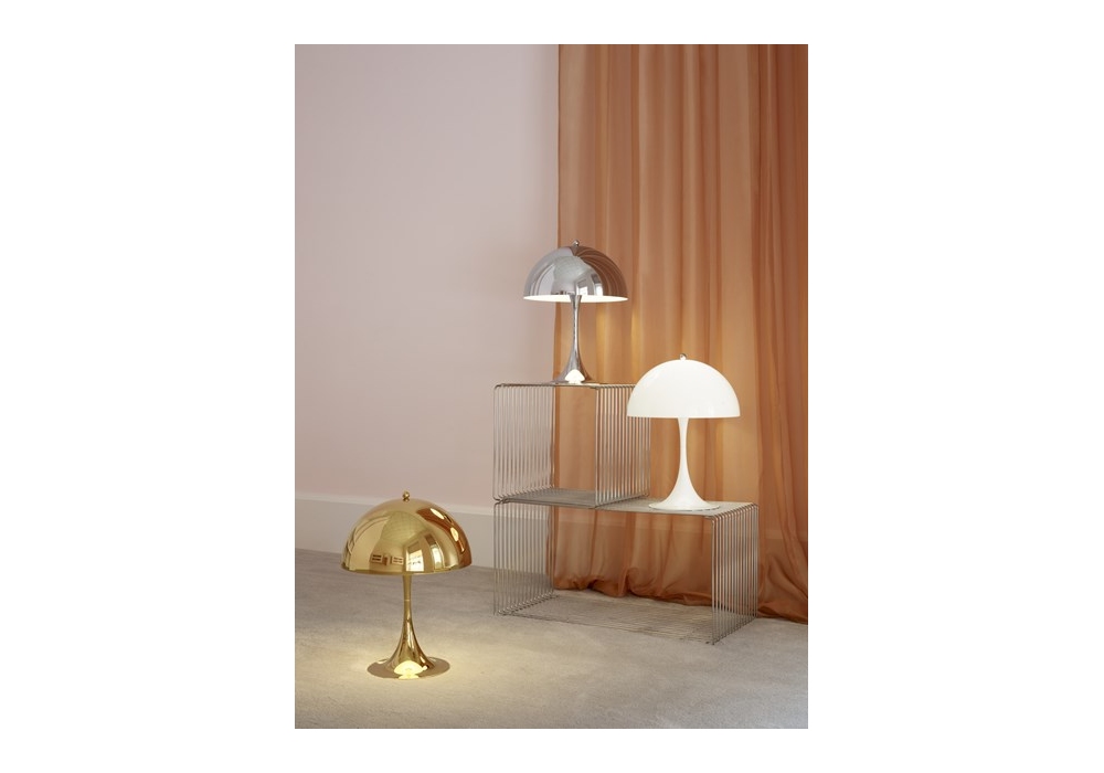 Panthella 320 conçue par Verner Panton pour Louis Panton est une lampe de table avec structure portante en aluminium moulé sous pression. L'écran est en acrylique tandis que le diffuseur est en PMMA opale et protège une source lumineuse de type LED ou halogène avec culot E14. Panthella 320 est disponible en différentes finitions.