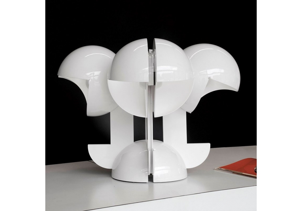 Ruspa 4 conçue par Gae Aulenti pour Martinelli Luce est une lampe de table entièrement réalisée en aluminium peint. Les réflecteurs sont réglables avec rotation indépendante et protègent une source de lumière LED. Ruspa 4 est disponible en différentes finitions.