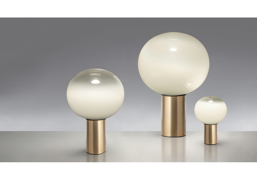 Laguna conçue par Matteo Thun et Antonio Rodriguez pour Artemide est une lampe de table avec base cylindrique en aluminium. Le diffuseur est en verre soufflé et protège une source de lumière LED à intensité variable. Laguna est disponible en différentes tailles et finitions de base.
