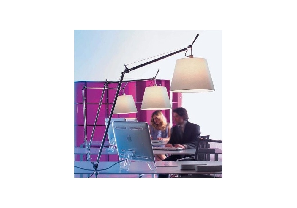 Tolomeo Basculante conçue par Michele De Lucchi & Giancarlo Fassina pour Artemide est une lampe de table avec base circulaire en acier et bras mobiles en aluminium. L'abat-jour est mobile et structuré en papier sulfurisé ou satiné et adopte une source lumineuse LED. Tolomeo Basculante est disponible en différentes versions et finitions.