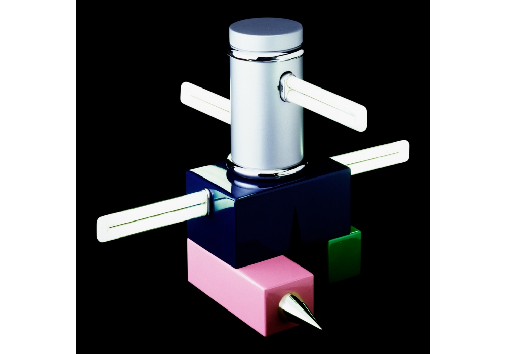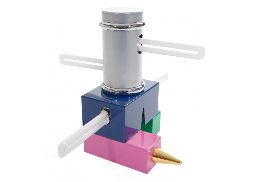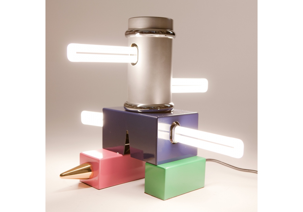 Laurel conçue par Peter Shire pour Memphis Milano est une lampe de table en métal.