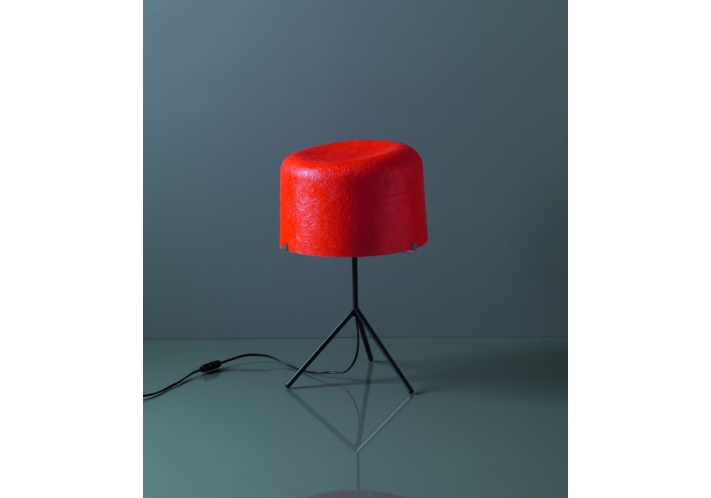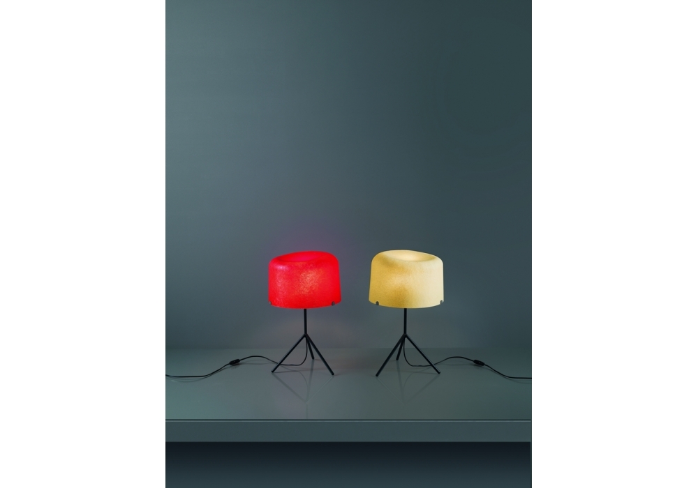 Ola conçue par Enrico Franzolini pour Quadrifoglio Group est une lampe de table avec abat-jour en fibre de verre disponible en différentes finitions et structure en métal peint noir goffratino.