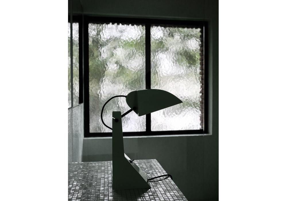 E63 conçue par Umberto Riva pour Tacchini est une lampe de table avec structure chromée ou peinte, disponible en différentes finitions.