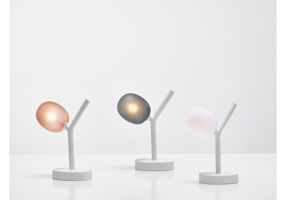 Ivy Battery conçue par Lucie Koldova pour Brokis est une lampe de table portable à base circulaire en métal enduit de poudre. Le diffuseur est de forme ovale en verre soufflé avec une surface externe dépolie à l'acide (opaque). La source de lumière est une LED dimmable tactile avec un câble d'alimentation USB noir ou argenté. Ivy Battery est disponible en différentes finitions.