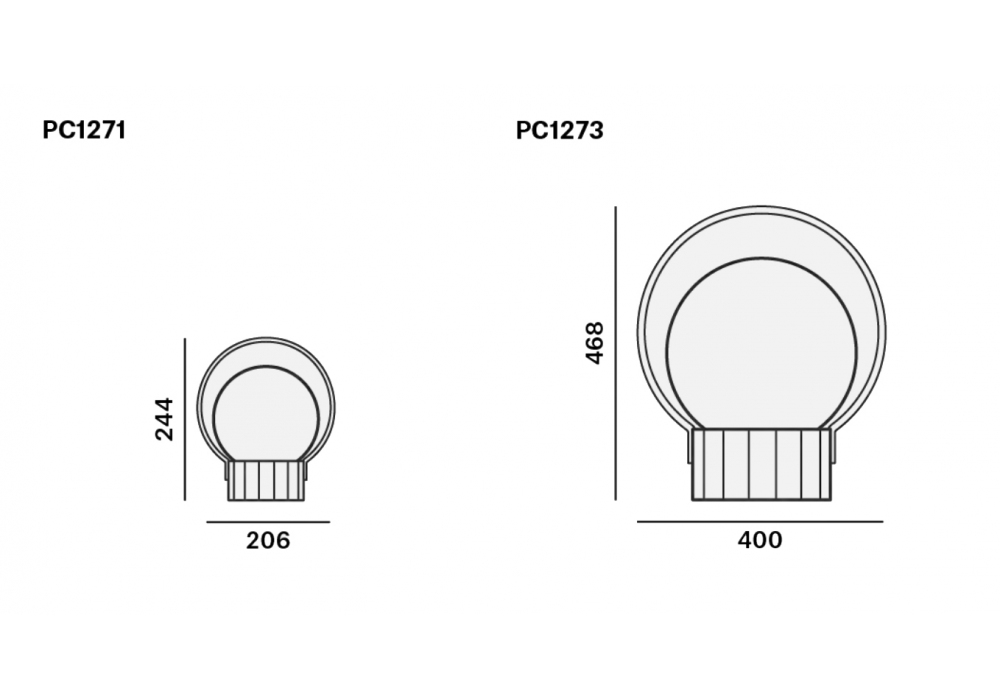 | Dimensions | Ø 20.6 x H 24.4 cm; Ø 40x H 46.8 cm. |