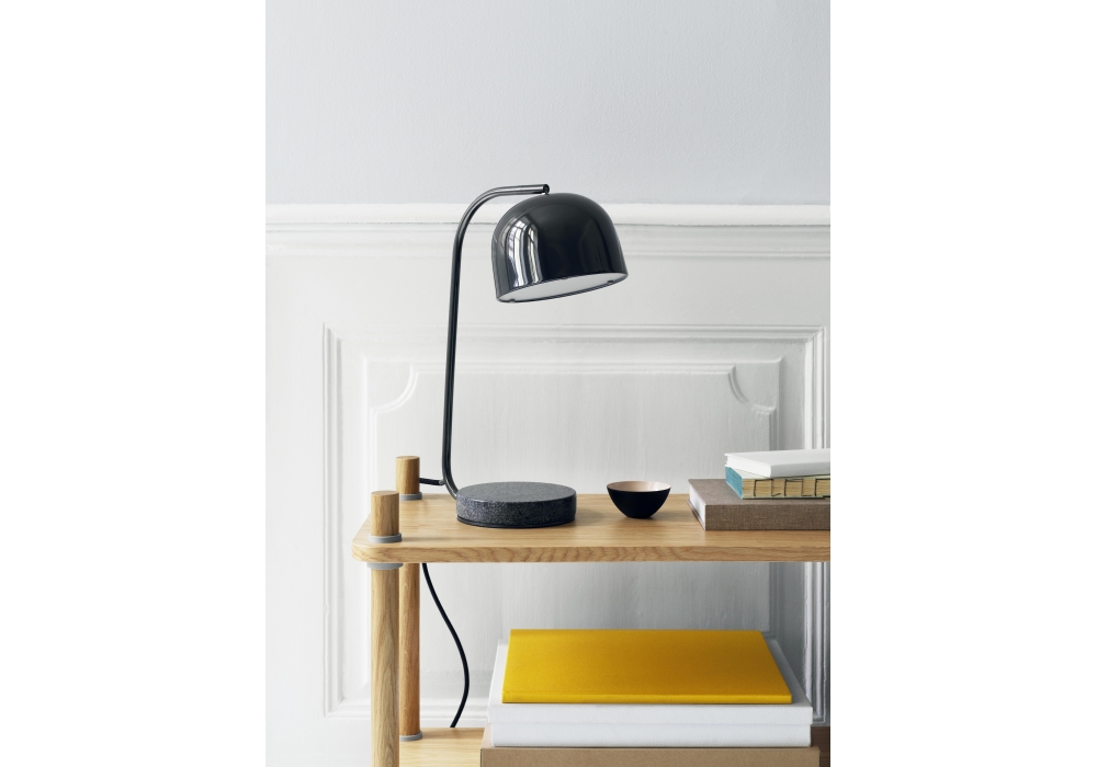Grant conçue par Simon Legald pour Normann Copenhagen est la lampe de table, entièrement structurée en acier, avec une base en granit gris habituel. L'abat-jour a une forme de cloche et peut être orienté sur un axe horizontal, grâce à une goupille à rotule placée dans la partie d'ancrage supérieure. La source lumineuse utilisée est de type LED dimmable (incluse), alimentée par un câble en fibre textile noire. Grant est disponible en couleurs, noir ou laiton et en version EU (Europe) ou US (U.S.A).