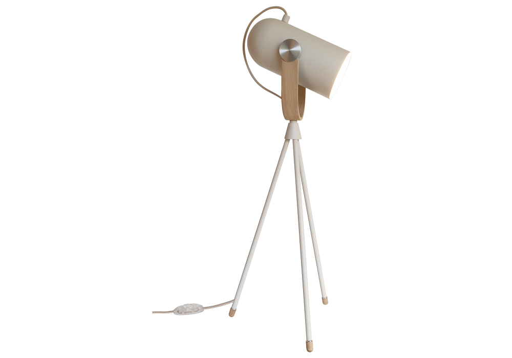 Carronade conçue par Markus Johansson pour Le Klint est une lampe de table structurée par la combinaison du métal et du bois. La base est un métal tubulaire à trois pieds serti dans un bracelet en bois de chêne ou de noyer américain. L'abat-jour est cylindrique en aluminium avec des détails en laiton ou en aluminium et adopte une source lumineuse LED ou halogène (non incluse). Carronade est disponible en deux finitions différentes.