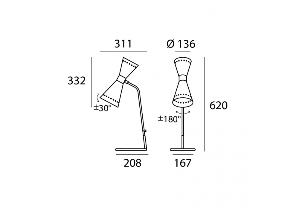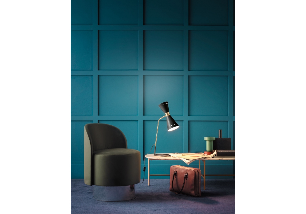 Megafono conçue et produite par Stilnovo est une lampe de table à LED avec un corps en laiton galvanisé de couleur or en deux finitions : or-noir et or-ivoire. Le mégaphone est équipé d'un double diffuseur en métal avec source de lumière LED.